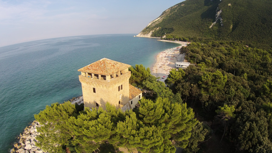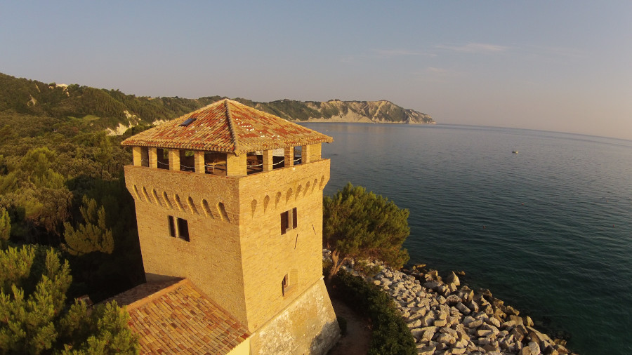 Dal centro di Ancona seguire le indicazioni per Portonovo / Riviera del Conero. Dovrete proprio arrivare alla località di Portonovo e una volta arrivati nella rotatoria a valle, seguire le indicazioni per la torre.